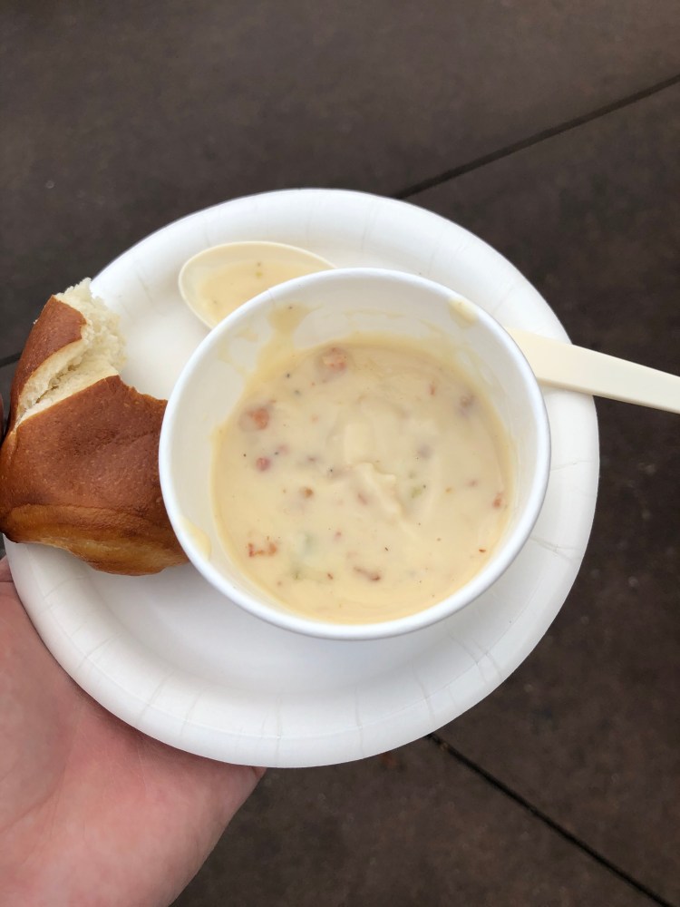 I’ve been wanting to try the Cheddar and Bacon Soup from Canada for a while, but with the weather being so hot I haven’t had a moment. Luckily for us on our last visit it was cooler and rainy, making it a perfect day for Soup! This soup is FULL of flavor! The pretzel roll it comes with is perfect for dipping in the soup. This one I did not want to share, so make sure you try it!