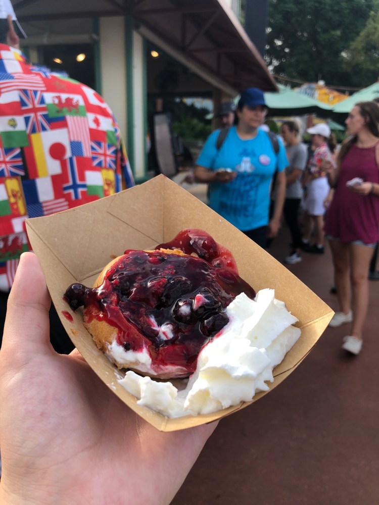Since I am trying to try every pavilion, I also made a stop at Brazil. The Seafood Stew looked amazing, but due to my fish allergy I couldn’t partake in that one, so I ordered the Pao de Queijo instead, which is Brazilian Cheese Bread. I was very impressed that it had a decent amount of flavor! I wouldn’t say I’m running for this pavilion, but I don’t regret trying it either.