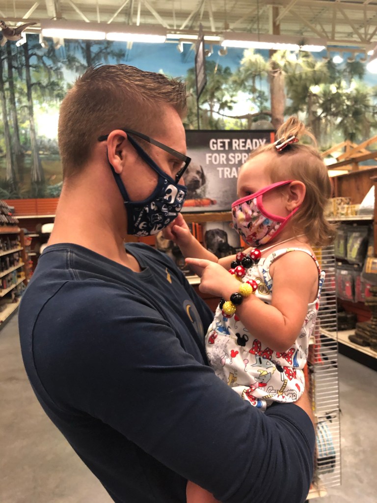8. WORK TO YOUR CHILD’S SPECIFIC PERSONALITY: Here is an example. Amelia HATES her stroller. She never wants to sit in it. We use this to our advantage. If she wants to walk, she has to wear her mask. If she doesn’t want to wear her mask, she has to sit in the stroller. Amelia is a rockstar with her mask and working specifically to her personality has worked best for us.
