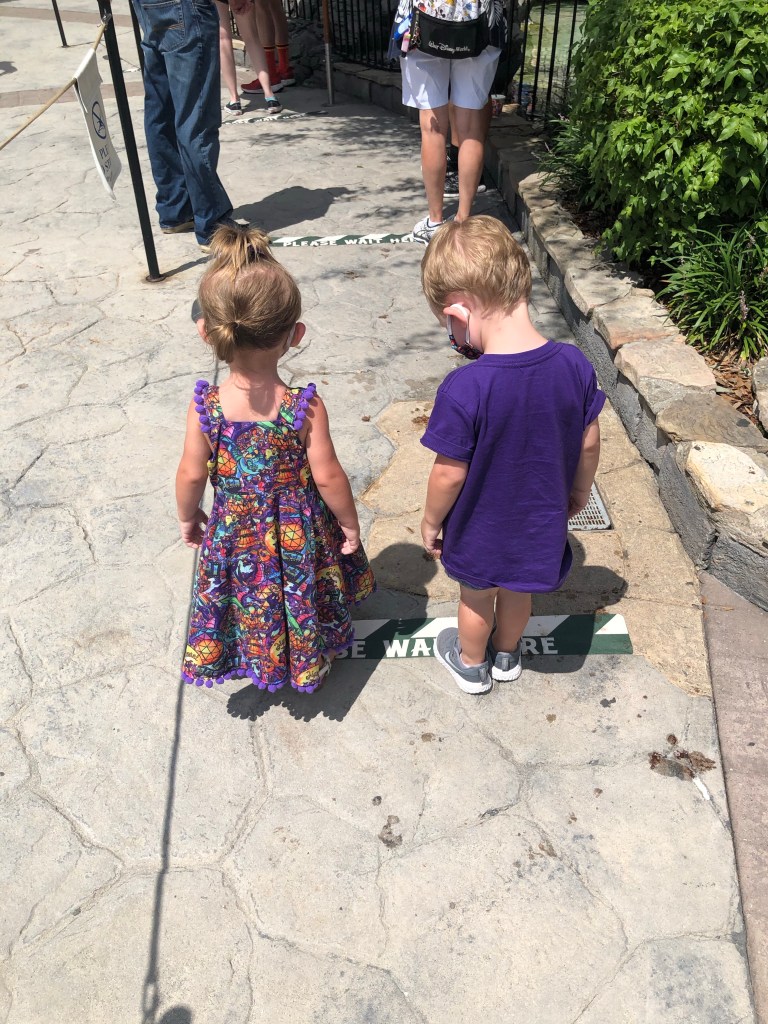 Mask wearing can be difficult at times even for adults, so when Disney announced that masks would be required for children ages 2 and up I was really concerned. I had no idea how we were going to be able to keep masks on our kids. My concern reached the point of me almost cancelling our passes because the idea just sounded impossible. The even harder part was that I didn’t just have one two-year-old to worry about. I have two two-year-olds. I was overwhelmed, nervous, and basically determined for it not to work.