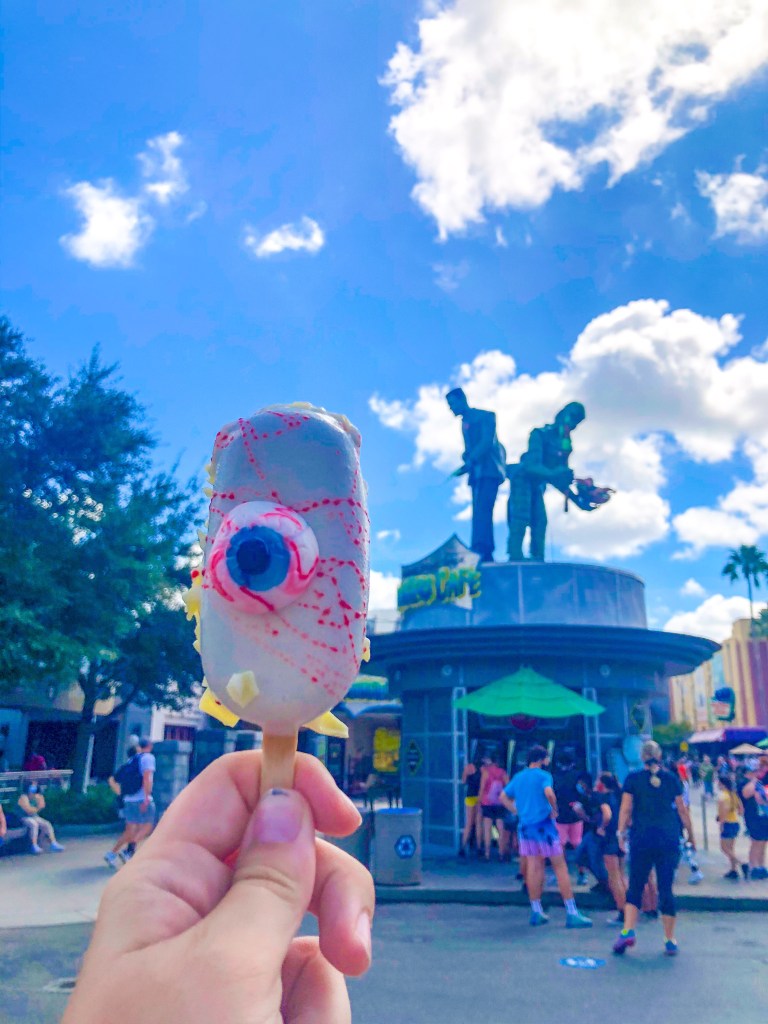 Once you get your passes you can leave the park if you want since you have already been accounted for. That information came directly from a park manager, so I would assume it’s good information. If you are looking for something to pass the time, I highly recommend checking out the Tribute Store or heading across the way and seeing all Islands of Adventure has to offer. The Tribute Store has an incredible beetlejuice set up and some deliciously scary snacks perfect for Halloween!