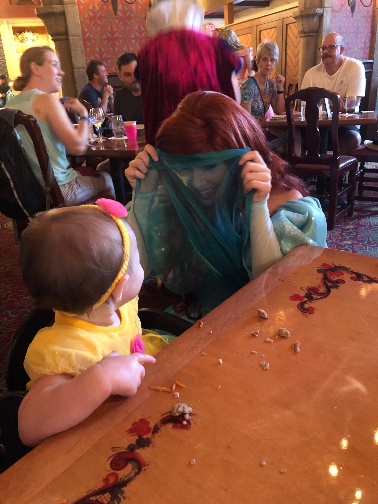 while all the princesses at the restaurant were amazing, Ariel went above and beyond. Grayson was kind of crabby and tired and she managed to get him to giggle and played peek-a-boo with them. They both LOVED her!