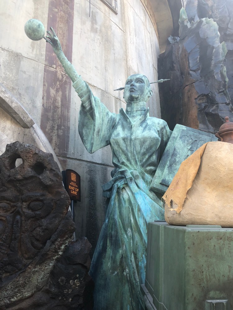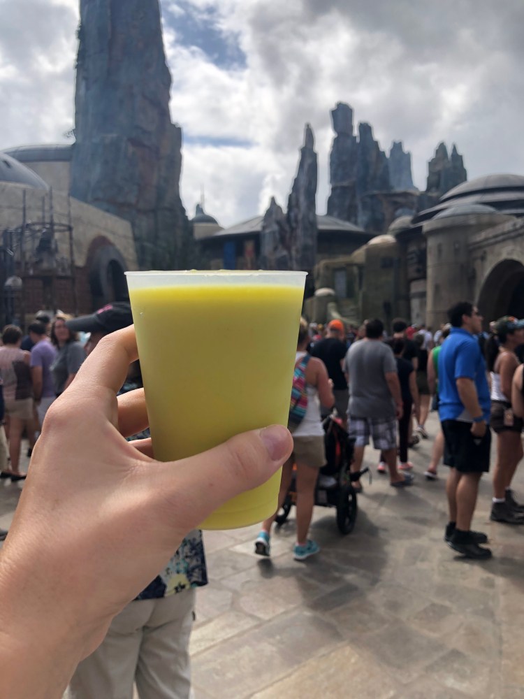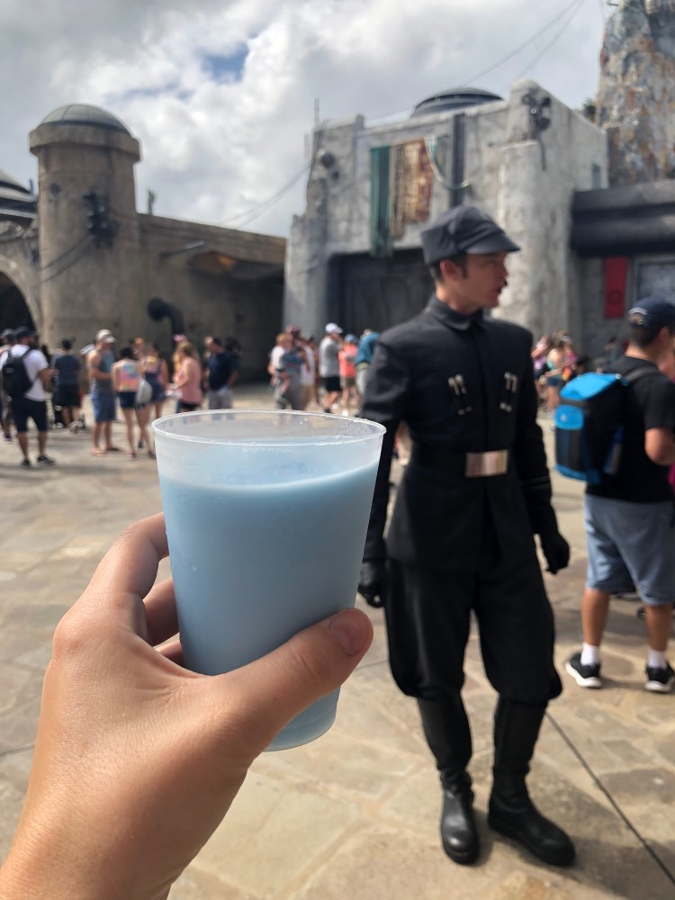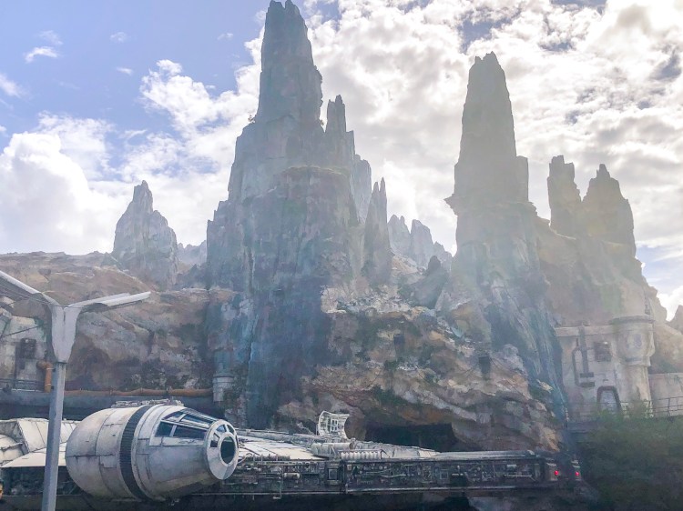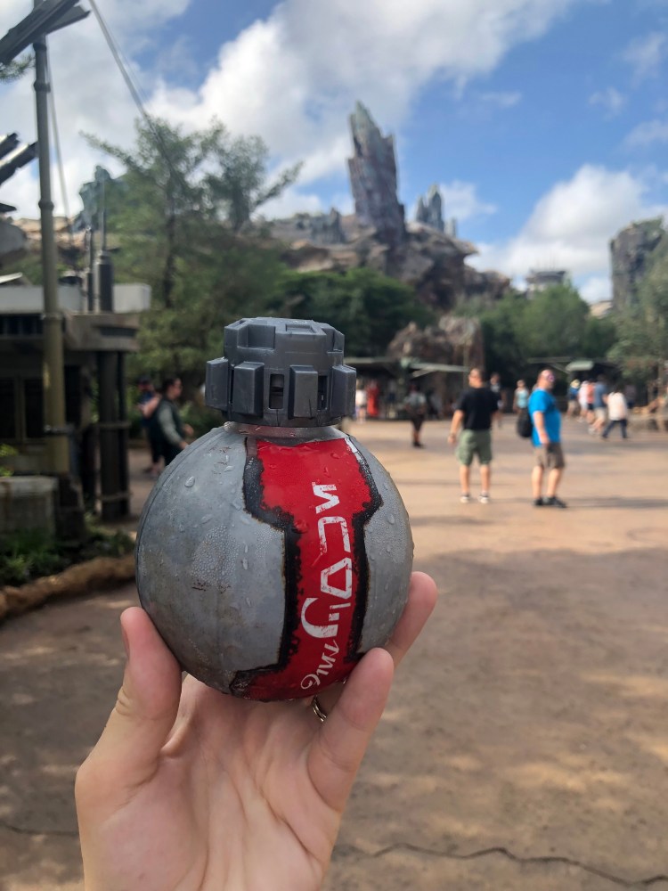 The first thing we did back in the land was get one of the super cool soda bottles they offer. You know, the ones TSA can’t determine are bombs or not (🙄). One thing I loved was that at checkout they didn’t use the term “dollars” instead they said “credits”. It’s tiny details like that that make Galaxy’s Edge such an immersive experience. Although we could see where the new ride is going to be, it obviously is not open yet. Although we could see a decent chunk of the line.